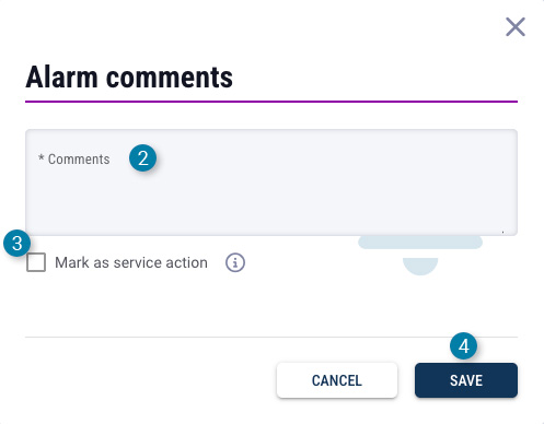 - Enter a comment describing the reason for marking the alarm as a service action.