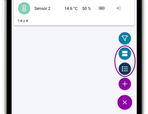 - Czujnik: nazwa urządzenia (wraz z ikonką oznaczającą typ urządzenia: koncentrator lub czujnik).