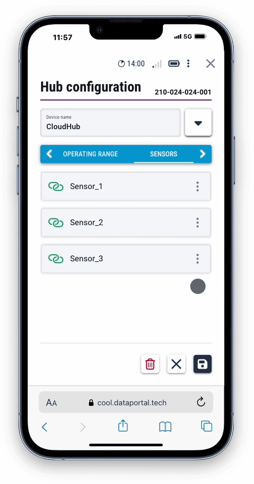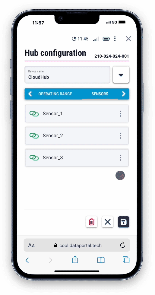 - OPERATIONAL RANGE: Here you can set recommended operational ranges and alarm thresholds, exceeding which will trigger the sending of alerts and alarms. Learn more here.