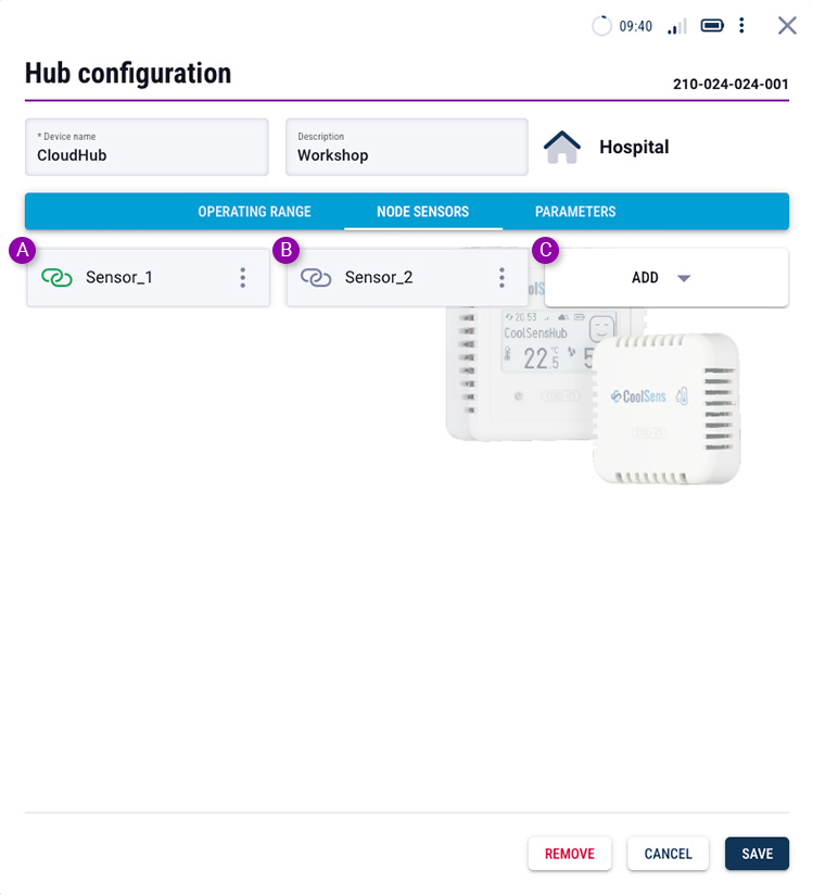 The hub is an essential element of the system. If its serial number was used to create an account in CoolSens, it will be automatically registered to the account and does not need to be added. Go to the next step.