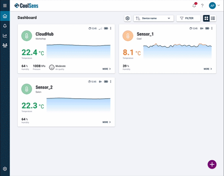 CoolSens wireless sensors do not require complicated configuration. Simply pair them with the hub, give it a name and optional additional description, and set alarm thresholds.